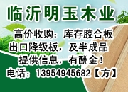 常年高價(jià)收購(gòu)庫(kù)存次品膠合板,生態(tài)板,建筑模板,木工板,出口降級(jí)板及一切半成品!數(shù)量不限,質(zhì)量規(guī)格無(wú)要求!提供信息付酬金! |
