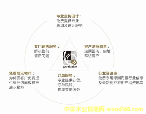 綠洲飾面板 720°thinker增值服務(wù) 服務(wù)升級 支持更多 近年,在國內(nèi)家具市場普遍低迷的情況下,綠洲飾面板業(yè)務(wù)量逆市不斷攀升。為感謝綠洲飾面板合作客戶的支持,綠洲飾面板深入了解家具廠家發(fā)展要求,提出“720°thinker增值服務(wù)”,旨在為綠洲客戶提供更高質(zhì)量的服務(wù),提供更多方面的合作與幫助。 綠洲飾面板“720°thinker增值服務(wù)”包括:提高目前客戶溝通渠道的服務(wù)質(zhì)量,如銷售環(huán)節(jié),配備專門服務(wù)的業(yè)務(wù)人員,提供售前問題咨詢與解答,訂單部分提供專門訂貨、訂單跟蹤、物流查詢服務(wù)。專業(yè)客戶經(jīng)理對客戶定期實地拜訪,了解客戶需求,解決售后問題。 綠洲在提升各項基礎(chǔ)服務(wù)質(zhì)量的基礎(chǔ)上,“720°thinker增值服務(wù)”還包括,在飾面板行業(yè)首次提出為廠家客戶及經(jīng)銷客戶提供各類免費咨詢及策劃設(shè)計增值服務(wù)。綠洲飾面板客戶可共享綠洲的行業(yè)信息咨詢,每年展會展出及市場走訪采集的信息資訊,最新櫥柜衣柜產(chǎn)品樣圖。同時專業(yè)的市場人員為家具廠家及經(jīng)銷客戶免費提供專業(yè)策劃及設(shè)計服務(wù),為優(yōu)質(zhì)客戶免費提供綠洲飾面板樣板、產(chǎn)品圖冊、展柜等各類展示物料。