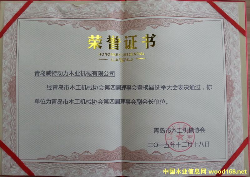 青島威特動力連任青島市木工機械協(xié)會副會長單位-青島威特動力木業(yè)機械有限公司
