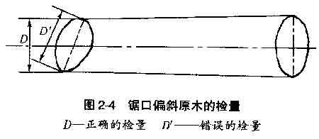 b.檢量鋸口偏斜原木的直徑時,應(yīng)垂直于原木的縱軸檢量,不允許與截面平行進行檢量(圖2-4)。